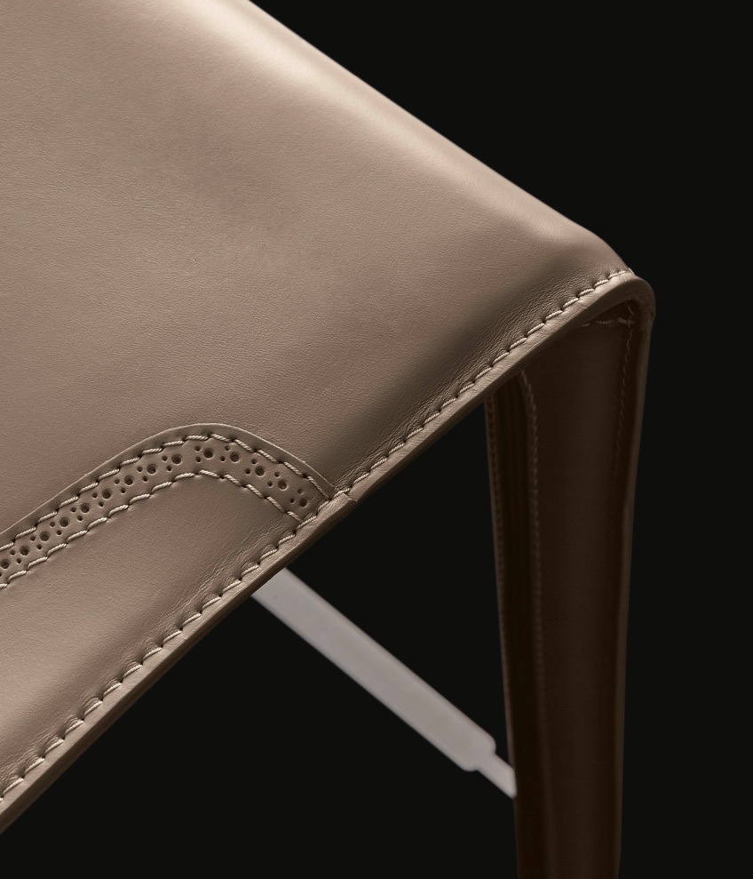 Барный стул Seattle от итальянской фабрики Poliform сочетает современный дизайн с элементами британской традиции. Модель полностью обита качественной кожей с декоративной перфорированной строчкой, что подчеркивает её премиальный статус. Доступен в двух вариантах высоты – для кухонной или барной стойки.