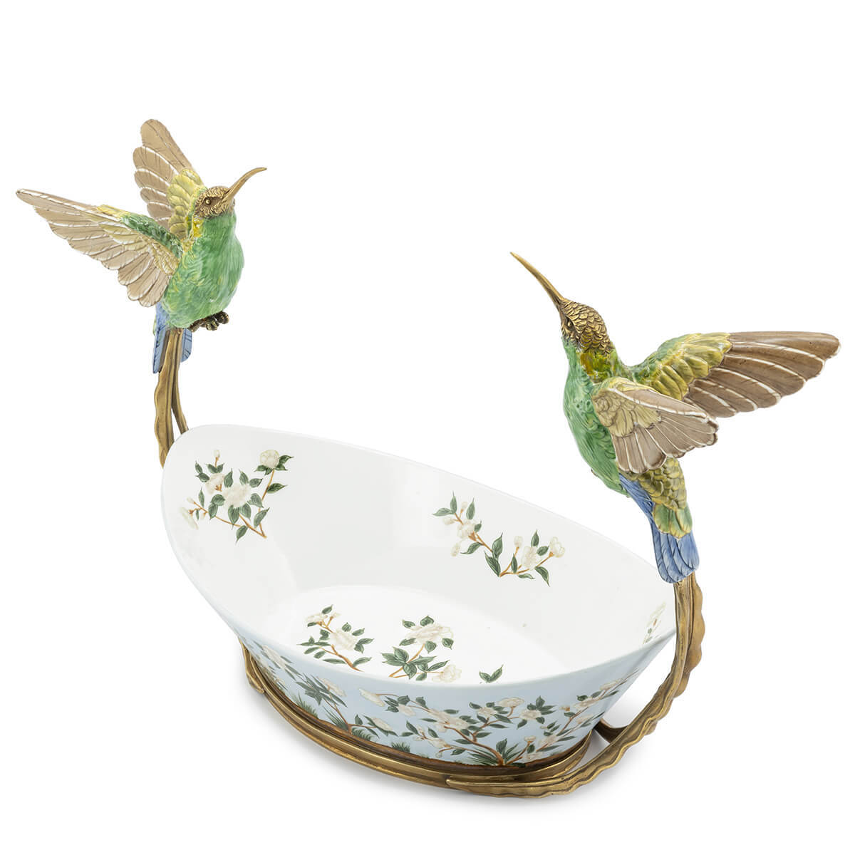 Чаша ATLANTA HUMMING – это изысканное произведение искусства, выполненное из высококачественного фарфора. Декорированная вручную, она представлена на бронзовой раме, на которой покоятся две фарфоровые птицы. Такой элемент декора станет великолепным акцентом в вашем интерьере.