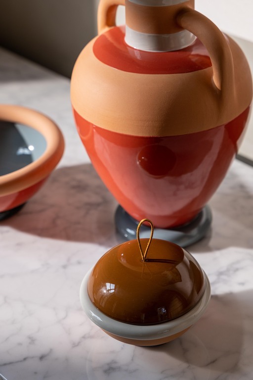 Чаша Ikiperu Pyx привлекает внимание своим уникальным дизайном — горизонтальные полосы, чередующиеся между глазурованной и неглазурованной керамикой, создают визуальный эффект, который будет замечен даже самыми взыскательными гостями. Доступная в двух цветовых комбинациях, вдохновленных нюансами кожи Pelle Frau®, чаша дополнена элегантным кожаным ремешком для легкого открывания крышки, который придает ей особую утонченность и практичность.