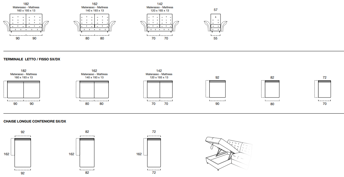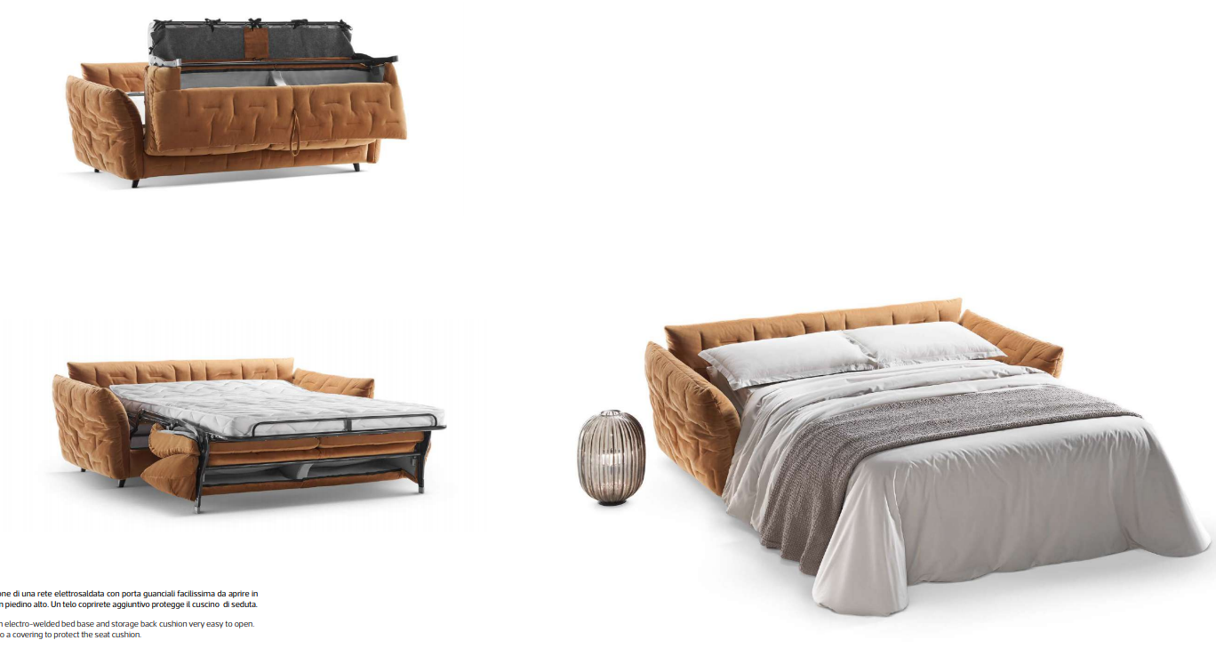 Изготовленный в Италии, диван автоматически ассоциируется с высокими стандартами качества. Он укомплектован матрасом толщиной 13 см, выполненным из экологически чистого полиуретана Naturalgreen с плотностью 35 кг/м³. Возможность выбора опционного матраса с эффектом памяти (плотность 50 кг/м³) позволит вам наслаждаться максимальным комфортом. Съемный чехол обеспечивает легкость в уходе и практичность.