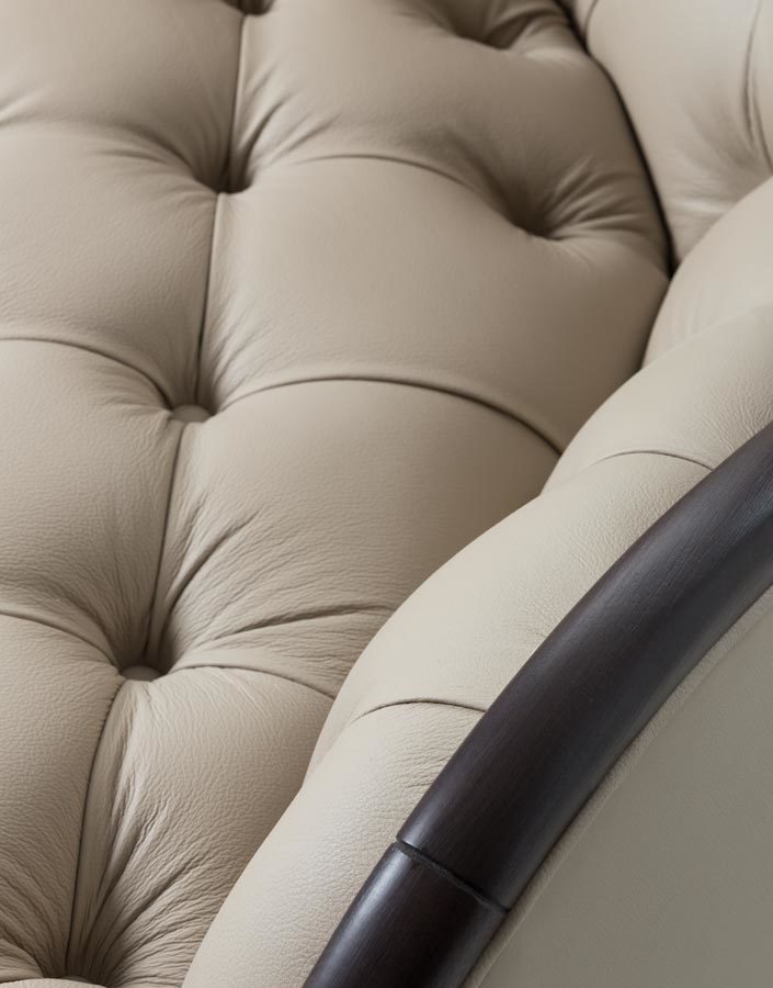 Деревянная конструкция обеспечивает долговечность, а выбор обивки (ткань или кожа) позволяет адаптировать диван под любой интерьер.