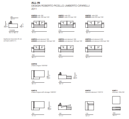 Производство All-in расположено в Италии, что подтверждает его статус премиальной итальянской мебели. Каждый элемент создается с вниманием к деталям и с использованием традиционных методов, что делает каждый диван уникальным произведением искусства.