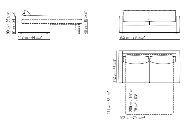 Каркас из многослойной древесины с наполнителем из пенополиуретана и защитной тканью гарантирует долговечность. Спинка дополнена стерилизованными подушками из гусиного пуха (сертификат Assopiuma, Золотая этикетка), а сиденье — упругим пенополиуретаном с лавсаном. Доступен в тканевой или кожаной обивке.