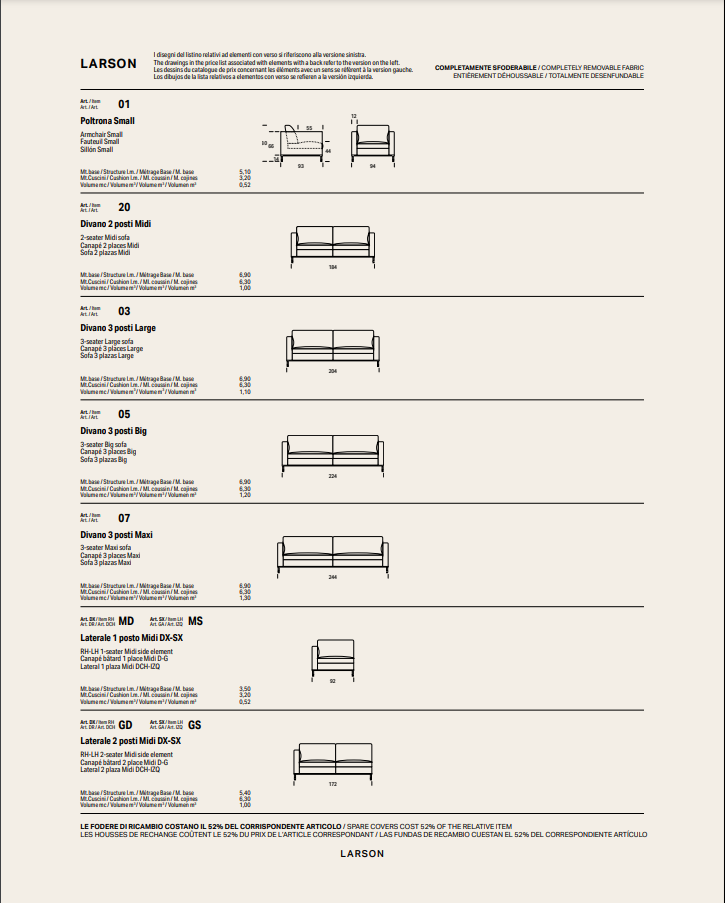 Погрузитесь в мир истинного комфорта с диваном LARSON, который объединяет элегантный дизайн и высокое итальянское качество. Созданный с вниманием к каждой детали, он станет настоящим произведением искусства в вашем интерьере.