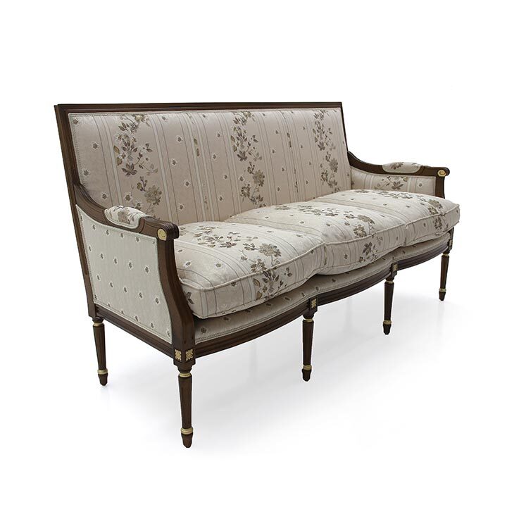 Диван LUIGI – образец утонченного стиля Людовика XVI, созданный для ценителей классики и комфорта. Изготовленный из прочного букового дерева, он обеспечивает надежность и долговечность.