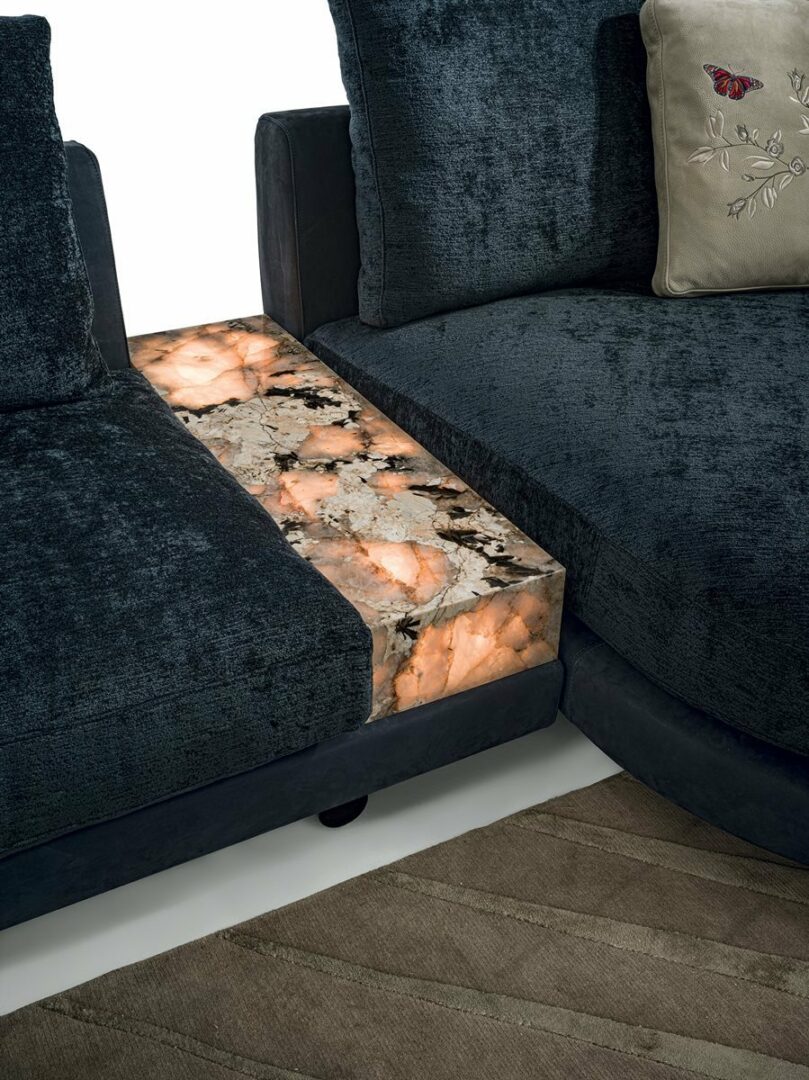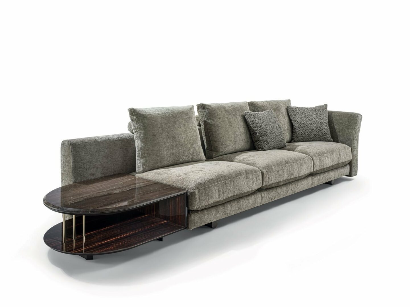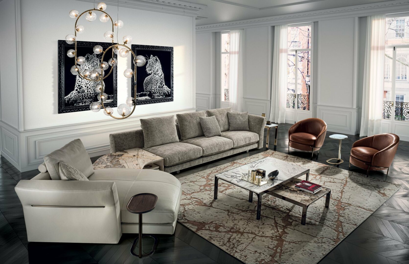 Коллекция Riverside предлагает современную модульную конструкцию, позволяющую адаптировать диван под любые требования интерьера. Его гимнастическая гибкость позволяет вам создать уникальные композиции, которые идеально вписываются в ваш дом. Элегантный металлический профиль подлокотника и ножки доступны в различных отделках, таких как глянцевый хром и матовое золото, что добавляет нотку шикарности.