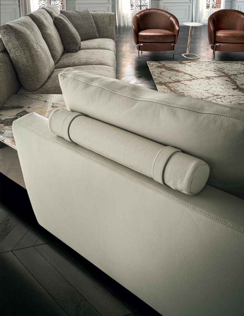 Диван RIVERSIDE от итальянской фабрики LONGHI – это воплощение элегантности и функциональности. Коллекция предлагает современную модульную конструкцию, которая позволяет адаптировать мебель под любые пространства. Каркас из прочного дерева и эластичных ремней обеспечивает надежность, а подушки из пенополиуретана с эффектом memory foam и стерилизованным гусиным пером обеспечивают комфорт.