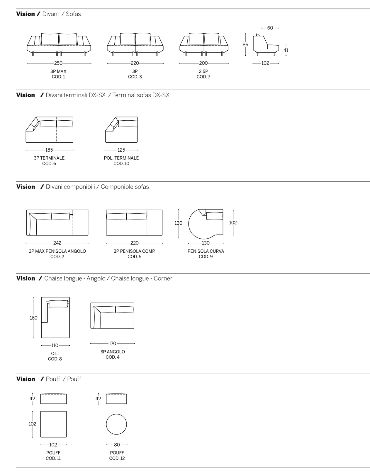 Благодаря модульной конструкции Диван Vision идеально впишется как в просторные апартаменты, так и в уютные гостиные. Его можно использовать: