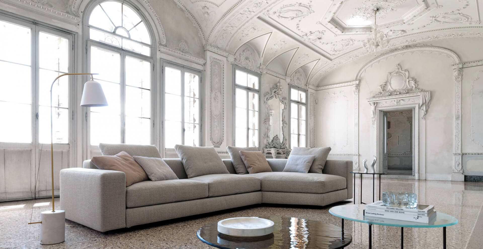 Диван VON DESIREE — это центральный элемент роскошного пространства. Представьте его в вашей гостиной: мягкие линии гармонируют с каминным порталом, а благородная фактура обивки перекликается с текстилем и декором. Он станет местом для вдохновенных бесед, семейных вечеров и приема дорогих гостей, подчеркивая ваш безупречный вкус.
