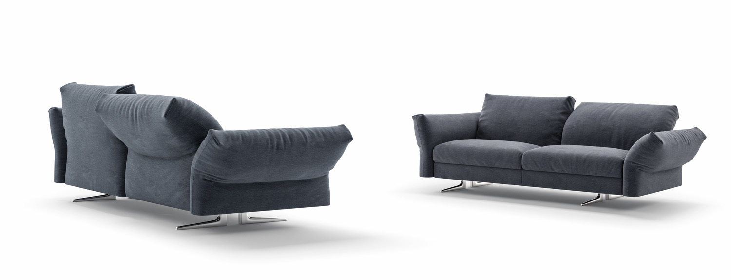 Модель отличается лаконичной выразительностью: спинки без декоративных швов подчеркивают чистоту линий и итальянское внимание к деталям. Диван доступен в различных конфигурациях, что делает его универсальным для гостиных любого размера и стиля.