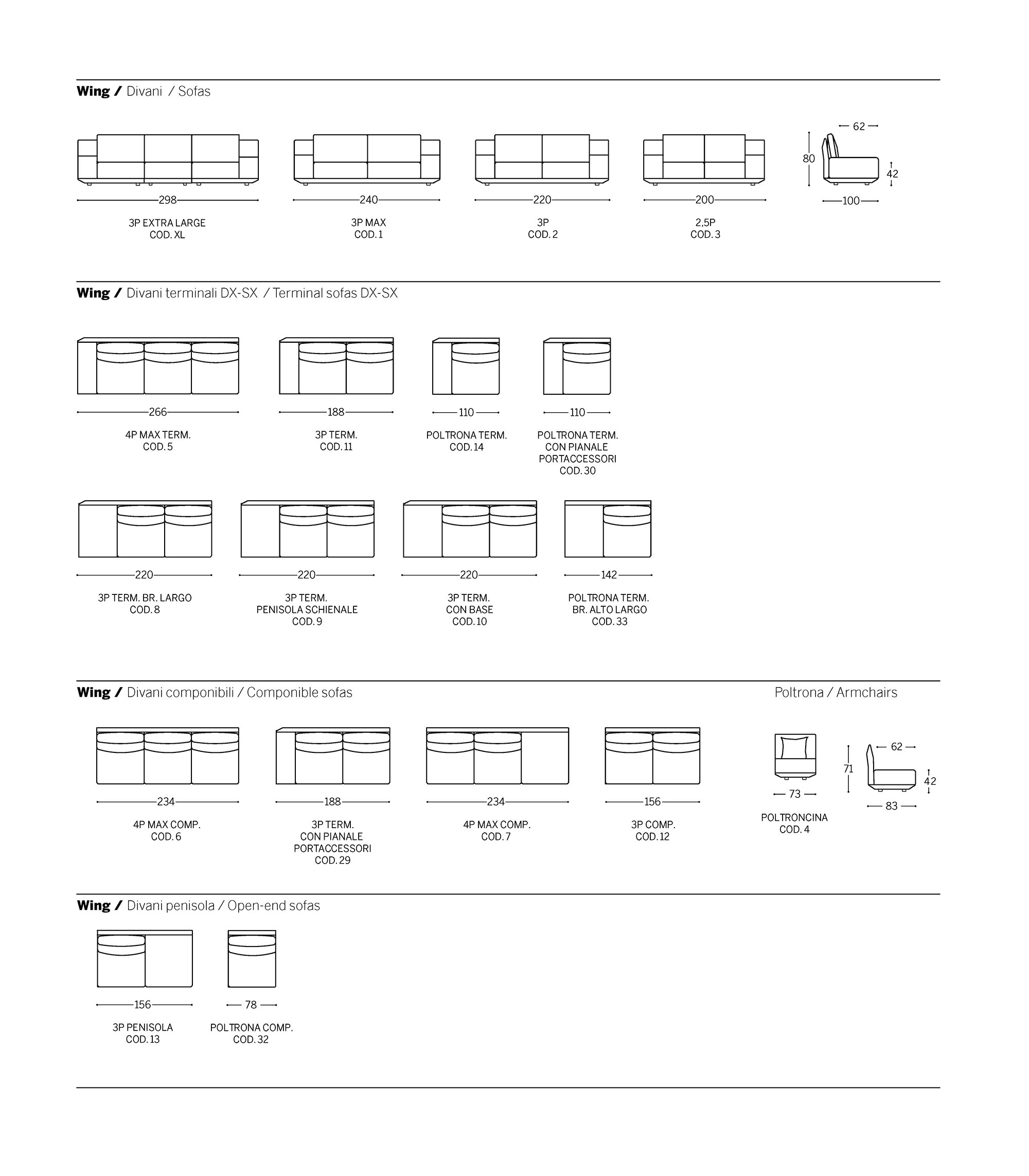 Итальянская мебель славится использованием премиальных материалов, и Диван Wing — не исключение. Каркас из отборной древесины обеспечивает прочность, а наполнитель из высокоэластичного пенополиуретана и гусиного пуха гарантирует непревзойденный комфорт. Обивка выполняется из: