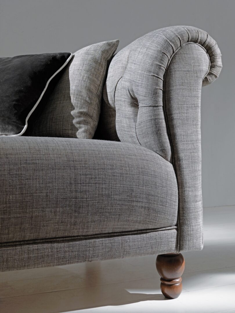 Диван York воплощает в себе гармонию классического и современного дизайна. Его спинка с ручной стежкой «капитоне» и складкой на подлокотниках создают ощущение уюта и тепла, в то время как строгие линии и чистые формы придают ему элегантность. Это настоящая находка для тех, кто ценит стиль и комфорт в своем доме.
