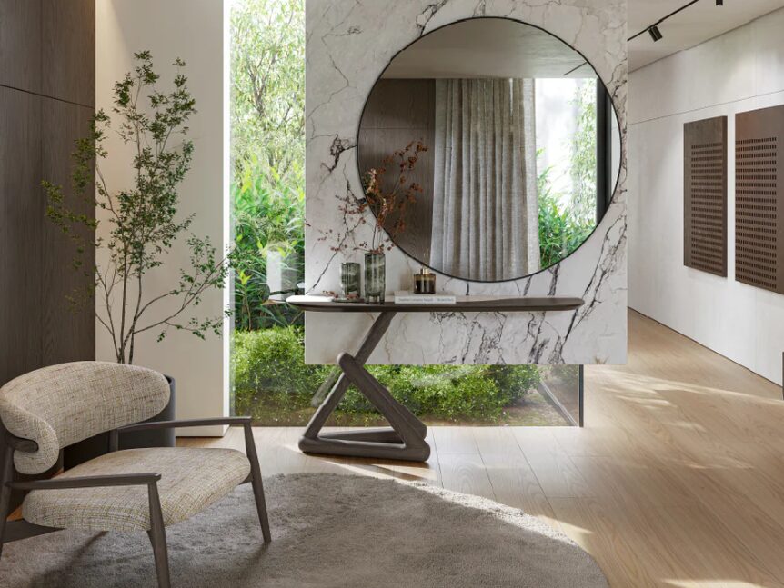 Консольный столик Linard — это изделие, сочетающее в себе современный дизайн и функциональность, созданное для украшения прихожей. Эксклюзивный дизайн ножек придает ему скульптурный характер, что делает его характерным элементом интерьера.