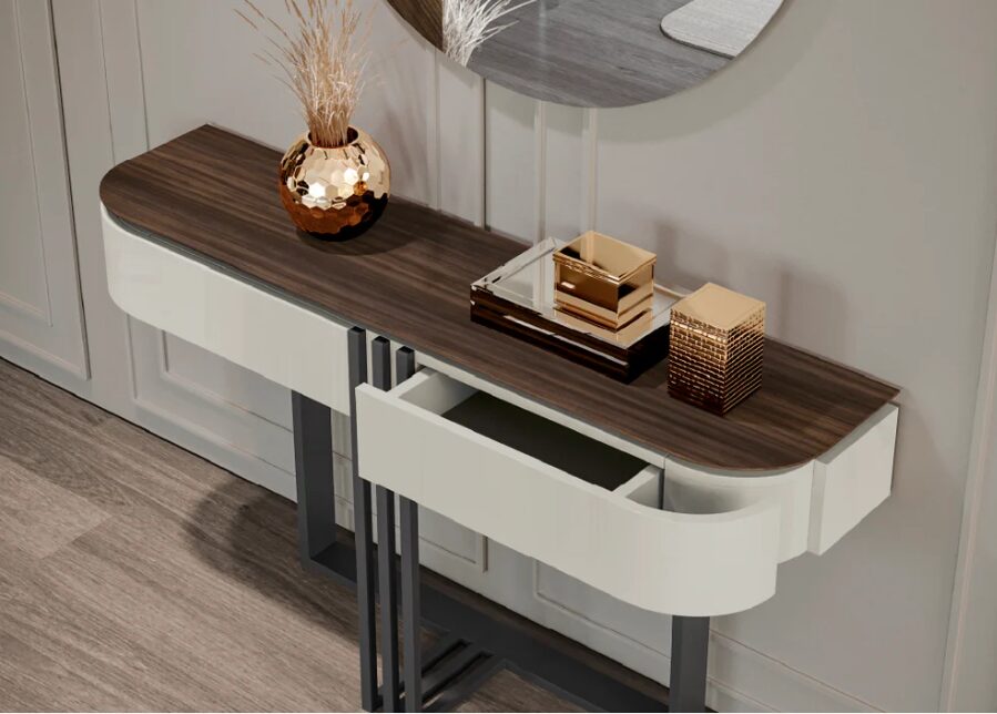 Новая консоль Holf отличается современным дизайном и смелыми линиями и идеально подходит для входных групп и коридоров, сочетающих современную эстетику с функциональностью. Благодаря прочной конструкции и изысканной отделке достигается баланс между визуальным эффектом и повседневной практичностью.