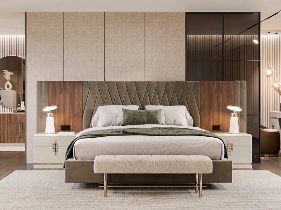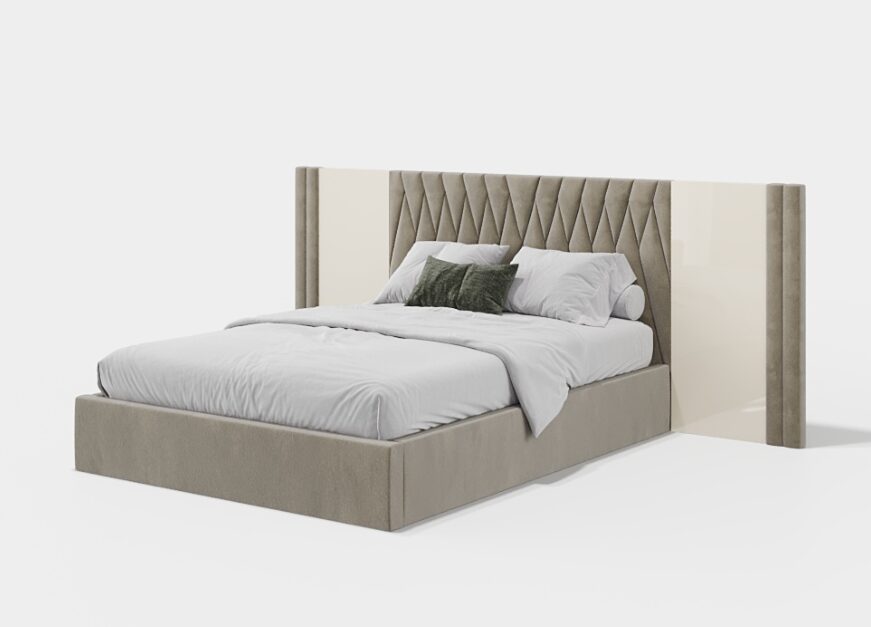 Кровать Batha III с закрытым основанием привносит в спальное пространство скульптурную и сдержанную эстетику. Непрерывный силуэт придает ей утонченное величие, идеально подходящее для современных спален, где комфорт и изысканность проявляются в архитектуре мебели.