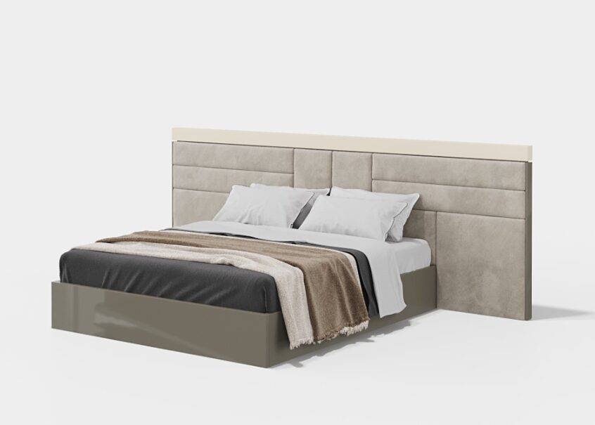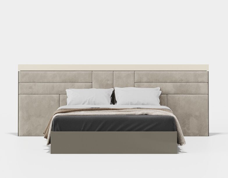 Опаловая кровать с закрытым основанием отличается обволакивающим и мягким дизайном, который добавляет визуальный комфорт пространству. Изогнутое мягкое изголовье создает тонкий гостеприимный жест, а мягкое основание длиной до пола усиливает непрерывность и прочность ансамбля. Предмет, сочетающий современный дизайн с сенсорным чтением мебели.