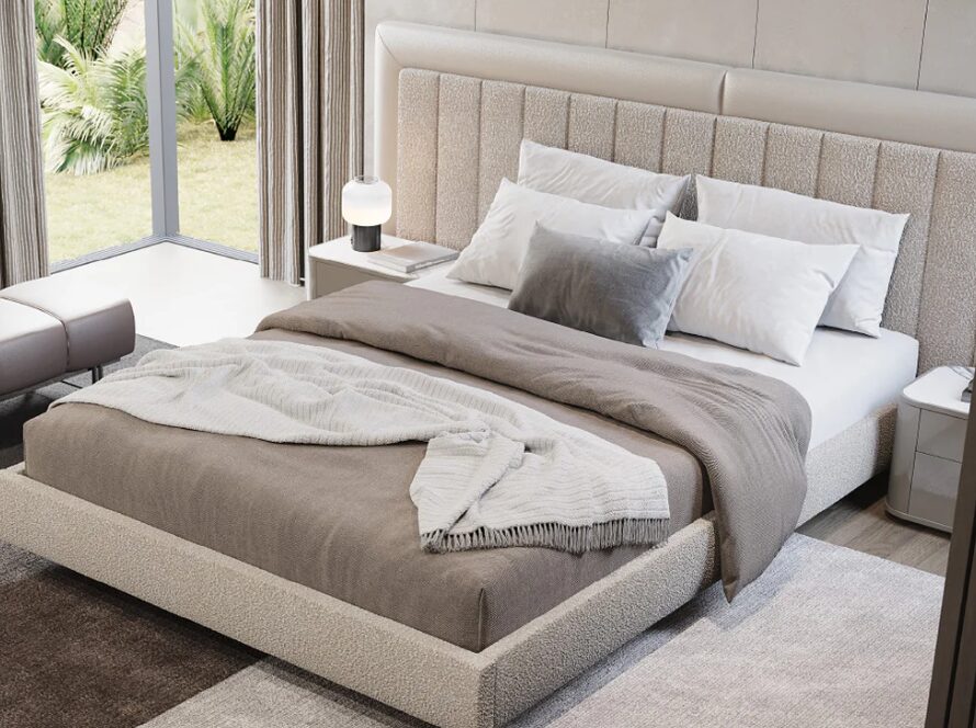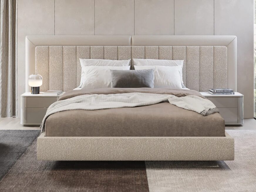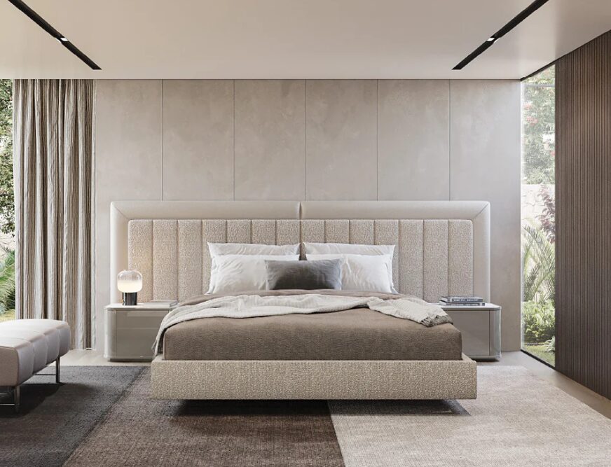 Кровать Hilay с закрытым основанием воплощает в себе современный подход к отдыху, благодаря прочной конструкции и цельному внешнему виду, который передает стабильность и изысканность. Изголовье с четкими горизонтальными линиями придает изделию индивидуальность, а полностью закрытое основание усиливает его архитектурное присутствие в пространстве.