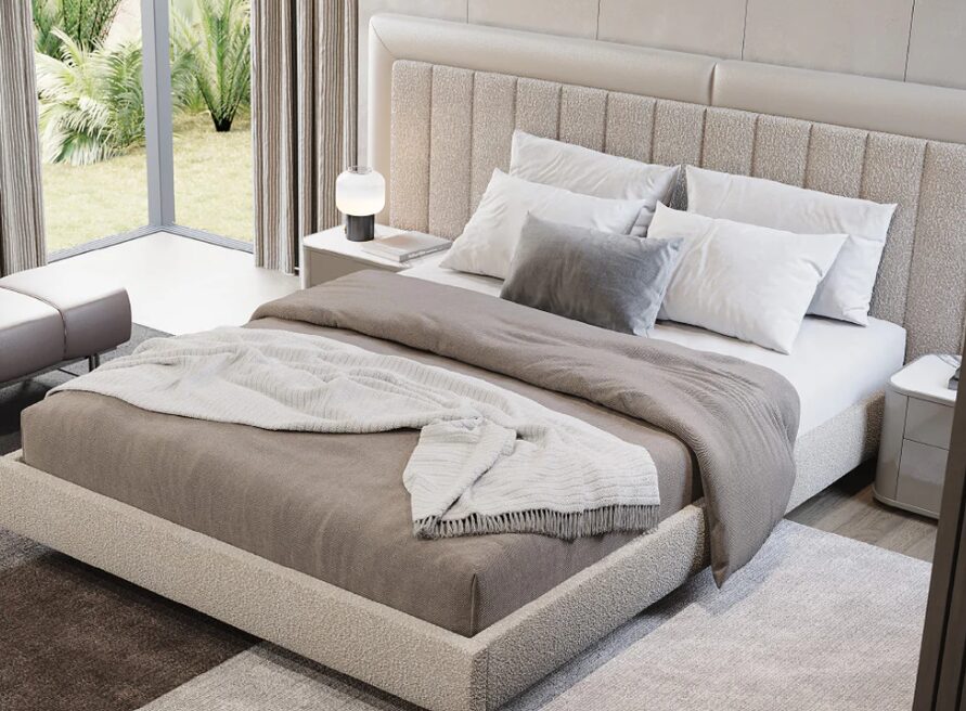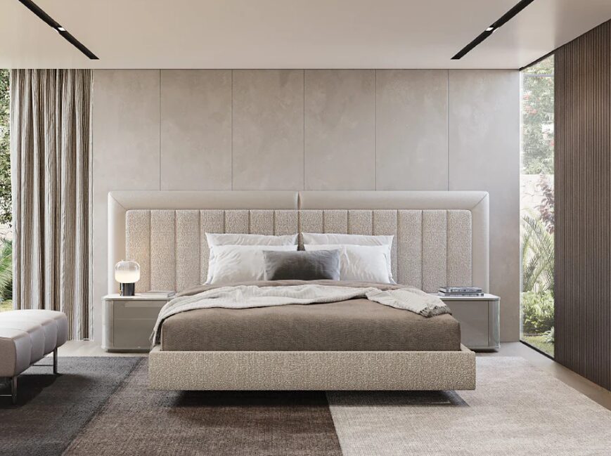 Кровать Hilay с подвесным основанием представляет собой легкую и утонченную интерпретацию современного стиля отдыха. Изголовье кровати с ярко выраженными горизонтальными линиями придает визуальный ритм изделию, а приподнятое основание создает ощущение парения и освобождает пространство внизу, усиливая ощущение простора в комнате.