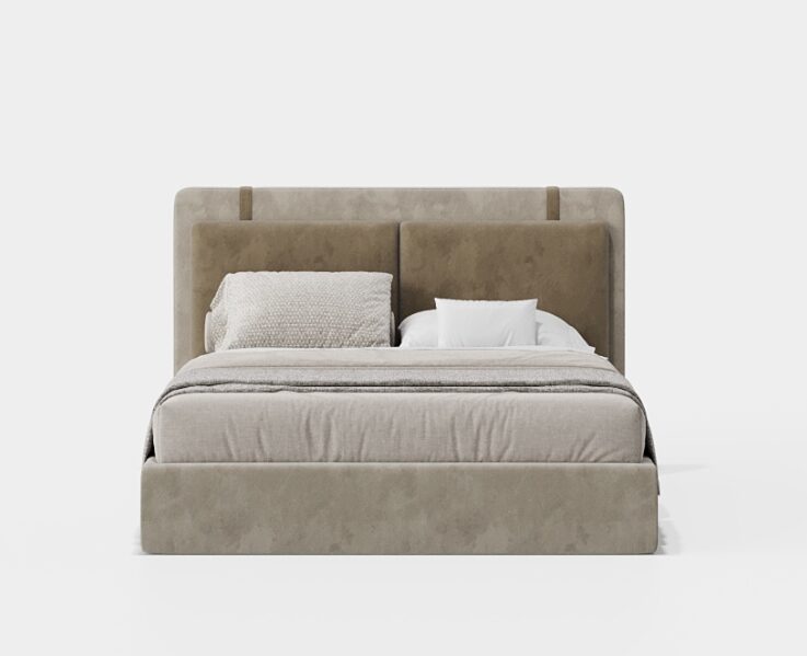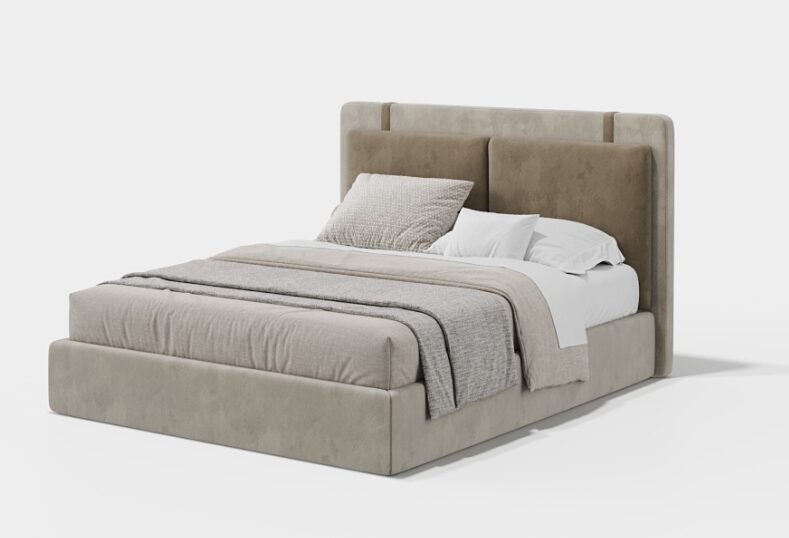 Кровать Vercelli III с закрытым основанием сочетает в себе архитектурную привлекательность и визуальный комфорт. Широкое изголовье кровати, состоящее из вертикальных панелей с мягкой обивкой, создает ритмичный и элегантный образ. Полностью обитое основание до пола усиливает прочность гарнитура, в результате чего получается внушительное, но сбалансированное изделие, идеально подходящее для проектов, в которых подчеркивается структурный дизайн и точные пропорции.