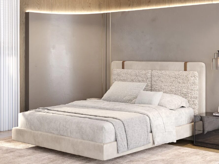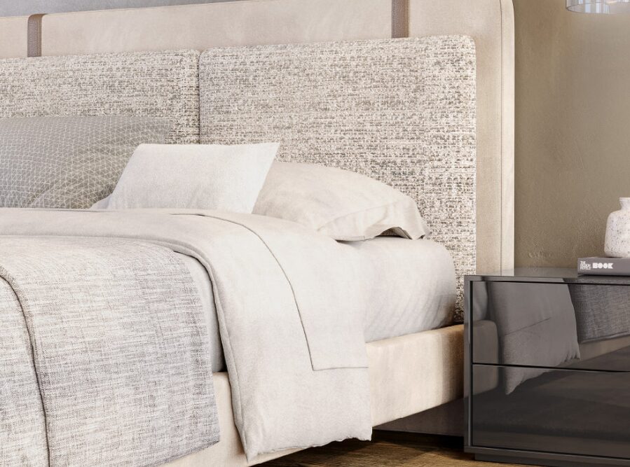 Кровать Vercelli III с закрытым основанием сочетает в себе архитектурную привлекательность и визуальный комфорт. Широкое изголовье кровати, состоящее из вертикальных панелей с мягкой обивкой, создает ритмичный и элегантный образ. Полностью обитое основание до пола усиливает прочность гарнитура, в результате чего получается внушительное, но сбалансированное изделие, идеально подходящее для проектов, в которых подчеркивается структурный дизайн и точные пропорции.