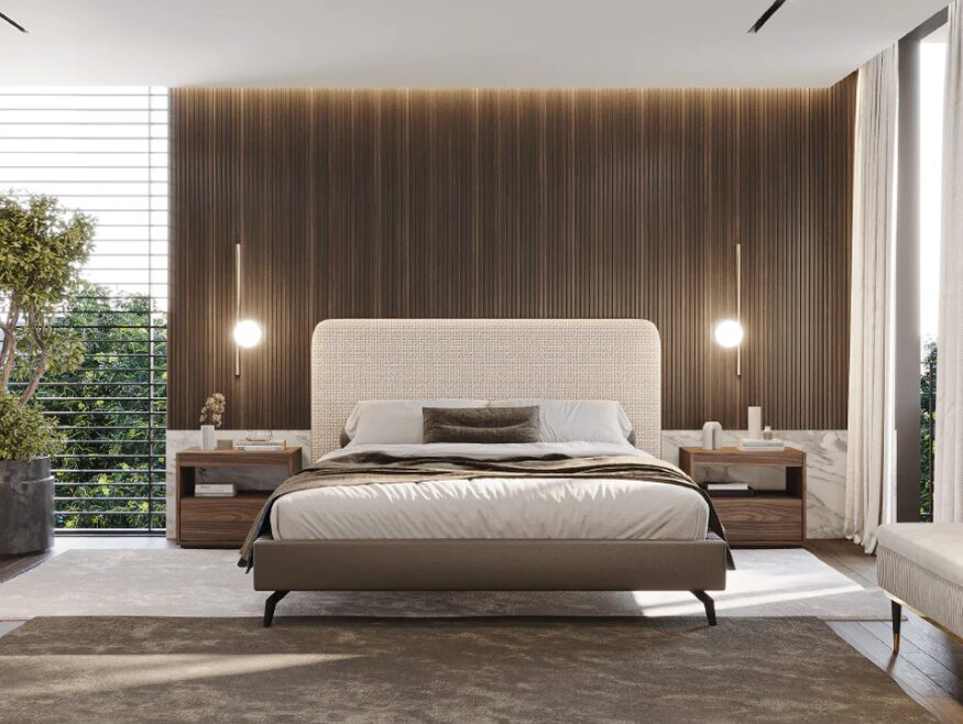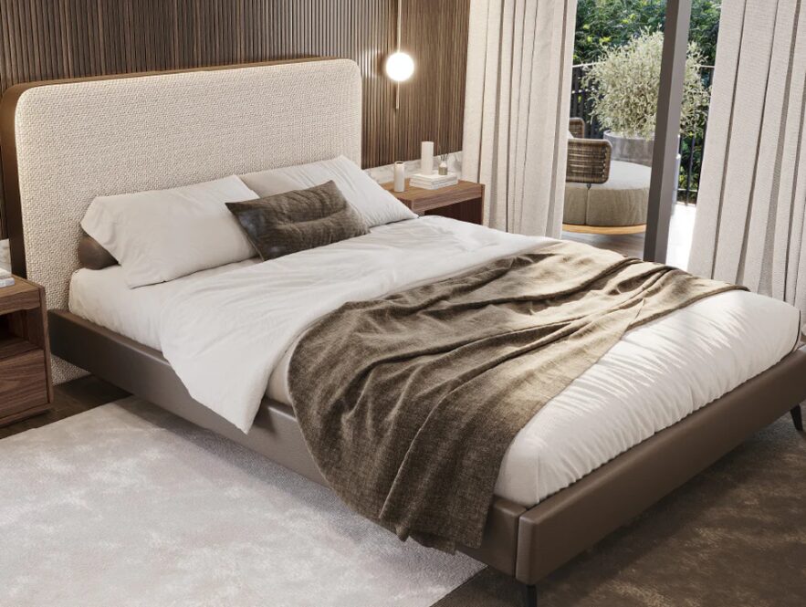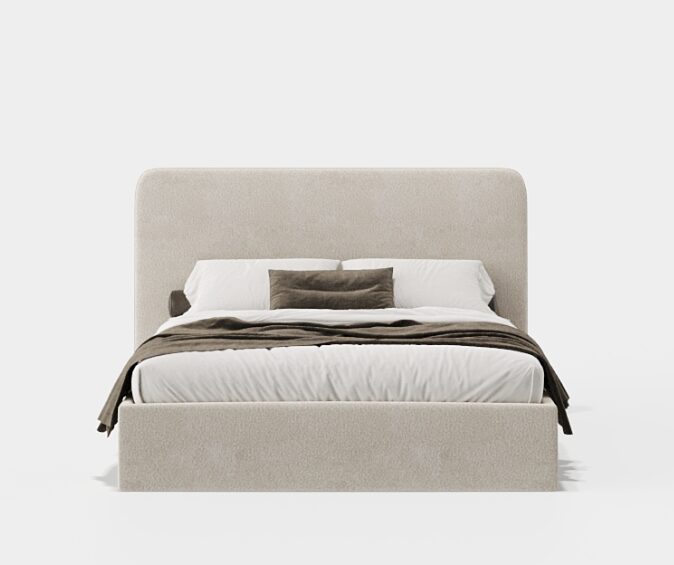 Кровать Selli II с подвесным основанием сочетает в себе современный дизайн с утонченной элегантностью и визуально легкой конструкцией. Ее низкое изголовье с плавным изгибом создает ощущение сдержанного гостеприимства, а приподнятое основание способствует плавному восприятию предмета и увеличивает ощущение пространства в спальне.