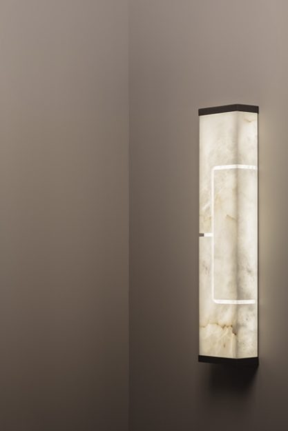 Вертикальный настенный светильник, идеально подходящий для проектов по контракту. Его структура подчеркивает естественную красоту алебастра, позволяя его прожилкам элегантно выделяться и придавать пространству утонченный характер.