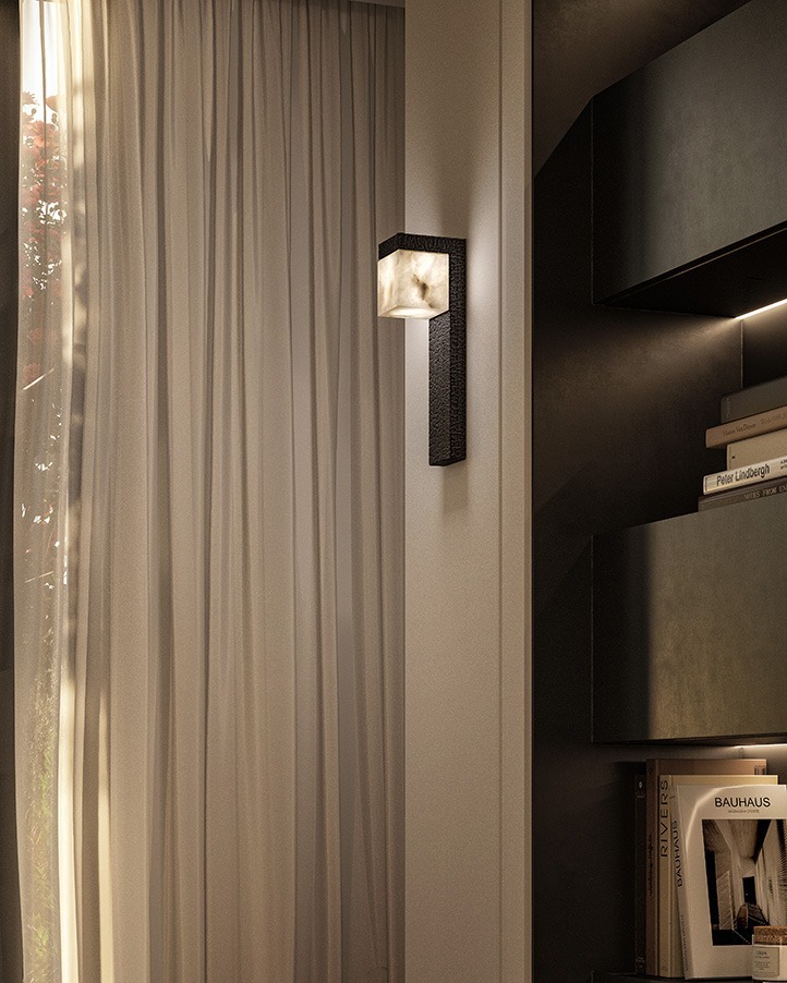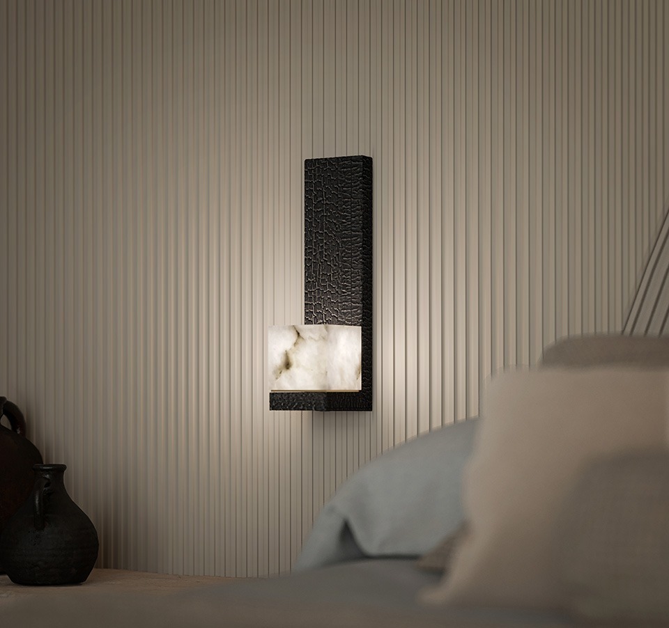 Переосмысливая традиционный светильник в современном стиле, настенное бра IO имеет геометрический силуэт, который обеспечивает мягкое боковое рассеивание света, контрастируя с его четкими, напористыми линиями.