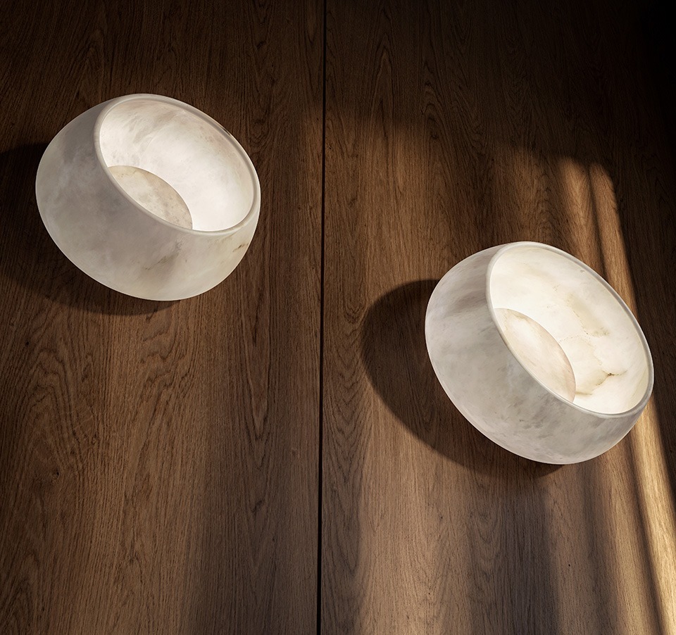 ИРИС раскрывает сущность алебастра с помощью уникальной, гипнотизирующей и мощной тройной интерпретации. Его изогнутый, чистый и органичный дизайн является настоящей эстетической визитной карточкой, передающей поэзию движения и мягкость материала. Этот плавный силуэт сочетает в себе естественные прожилки камня, усиливающие свет и придающие ему утонченный, неподвластный времени вид. Это изделие, отдающее дань уважения материалу и мастерству Алена Эллуз Париса, выходит за рамки обыденности и дарит необыкновенные ощущения, привнося редкую элегантность в престижные интерьеры с утонченностью и поэтичностью.