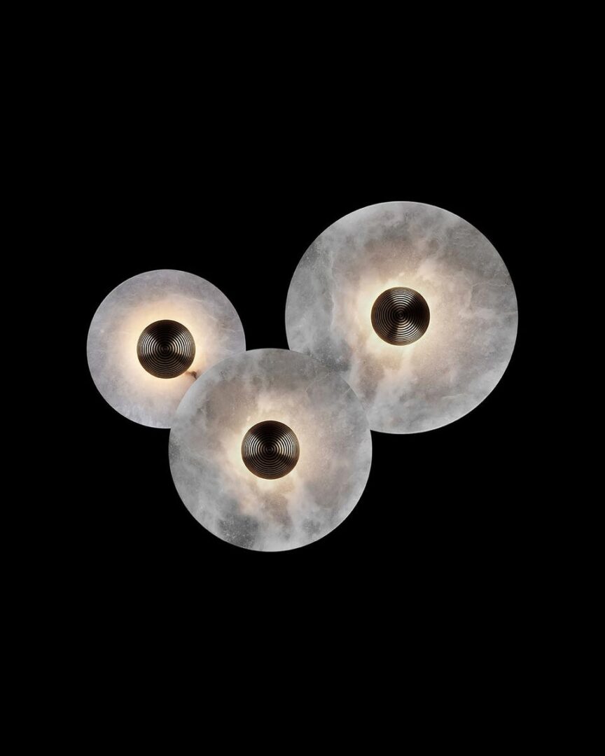 ПОЛУПРОЗРАЧНЫЕ АЛЕБАСТРОВЫЕ ПОВЕРХНОСТИ СЕРИИ MEDIAN ПЕРЕСЕКАЮТСЯ РИФЛЕНОЙ ФОРМОЙ ИЗ ЛАТУНИ, ЧТО ОТСЫЛАЕТ К ТРАДИЦИОННЫМ БЛИЖНЕВОСТОЧНЫМ УКРАШЕНИЯМ И В ТО ЖЕ ВРЕМЯ ПОЗВОЛЯЕТ ВЗГЛЯНУТЬ НА НИХ СКВОЗЬ ПРИЗМУ ФУТУРИЗМА. КАМЕНЬ СВЕТИТСЯ ОТ СКРЫТОГО ИСТОЧНИКА СВЕТА, ПОДЧЕРКИВАЯ ВЗАИМОСВЯЗЬ МЕЖДУ ТВЕРДЫМ И ПРОНИЦАЕМЫМ.