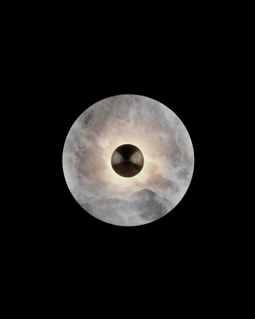 ПОЛУПРОЗРАЧНЫЕ АЛЕБАСТРОВЫЕ ПОВЕРХНОСТИ СЕРИИ MEDIAN ПЕРЕСЕКАЮТСЯ РИФЛЕНОЙ ФОРМОЙ ИЗ ЛАТУНИ, ЧТО ОТСЫЛАЕТ К ТРАДИЦИОННЫМ БЛИЖНЕВОСТОЧНЫМ УКРАШЕНИЯМ И В ТО ЖЕ ВРЕМЯ ПОЗВОЛЯЕТ ВЗГЛЯНУТЬ НА НИХ СКВОЗЬ ПРИЗМУ ФУТУРИЗМА. КАМЕНЬ СВЕТИТСЯ ОТ СКРЫТОГО ИСТОЧНИКА СВЕТА, ПОДЧЕРКИВАЯ ВЗАИМОСВЯЗЬ МЕЖДУ ТВЕРДЫМ И ПРОНИЦАЕМЫМ.