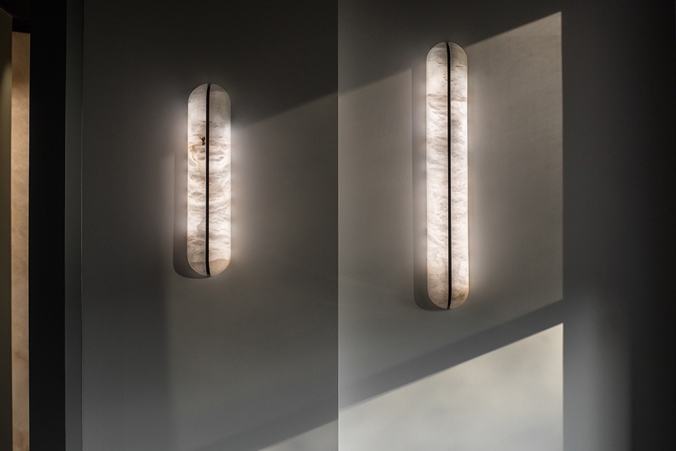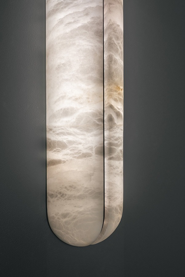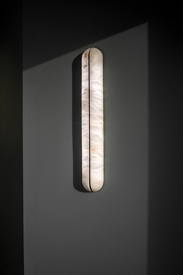 Бра MY воплощают в себе сущность минерального материала с тонкой подсветкой. Элегантные и минималистичные, они идеально симметрично сочетают в себе два тонких элемента из алебастра, соединенных черным стальным стержнем. Их рассеянное освещение создает тонкую и изысканную игру между двумя компонентами. Изящные и сдержанные, они органично вписываются в минималистичные интерьеры, придавая характер любому пространству. Доступные в размерах 17,7 дюйма или 25,5 дюйма, они создают светящийся образ, который является одновременно вневременным и скульптурным.