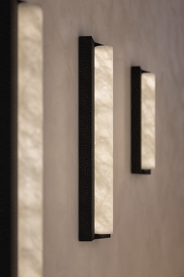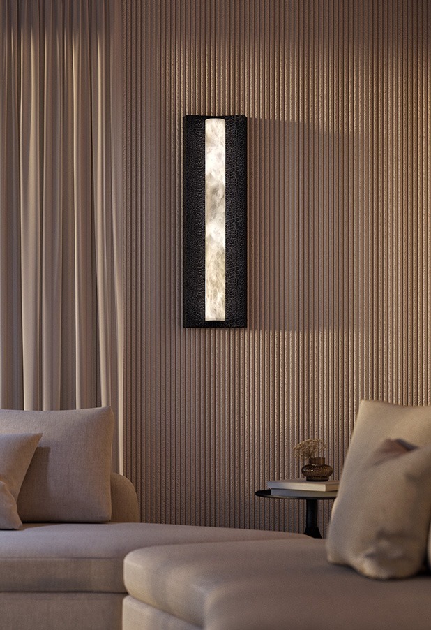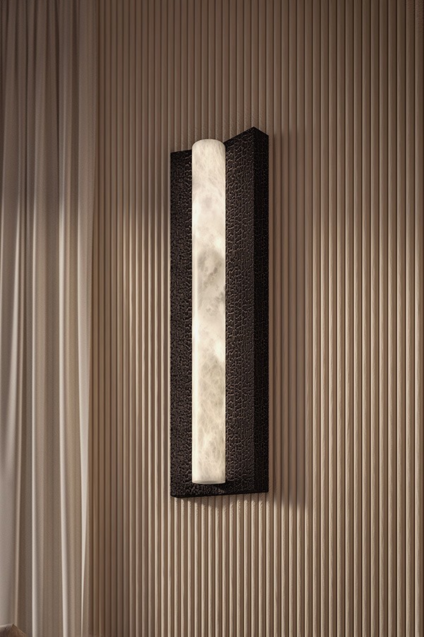 Настенное бра VULCAIN в форме трубы из алебастра, элегантно установленное на подставке из обожженного дерева, прекрасно освещает интерьер. Доступно в трех размерах (9.69″ / 31.50″ / 47.24″), этот настенный светильник, независимо от того, устанавливается ли он отдельно или в составе композиции, придает неповторимый вид любому пространству.