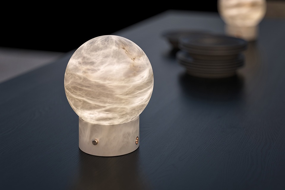 Повторяя движение Земли вокруг Солнца, АФИНА изящно покоится на цилиндре, воплощая идеальный баланс. Благодаря своей прозрачности, мягкий свет раскрывает текучие узоры алебастра, напоминающие океанские течения в вечном движении. Это настоящее приглашение к путешествиям, оно переносит воображение в самые отдаленные уголки мира, наполняя каждое пространство умиротворяющей безмятежностью. 8-часовая автономность.