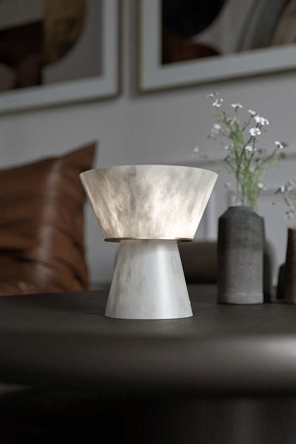 GAMA играет изгибами и чистыми линиями, создавая идеальную гармонию. При освещении проявляется чистая красота алебастра, который излучает мягкое и изысканное сияние. Его кочевая версия, соответствующая эстетике коллекции, дарит вам нежное сияние и автономность до 8 часов, придавая каждому мгновению неподвластный времени блеск.