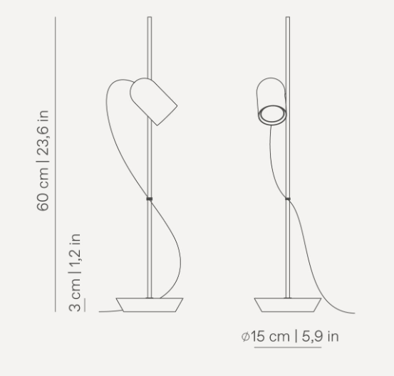 Этот дизайн сочетает в себе металлический корпус с отделкой из латуни, основание из орехового дерева и прожектор — материал, который подчеркивает естественность и теплоту света.