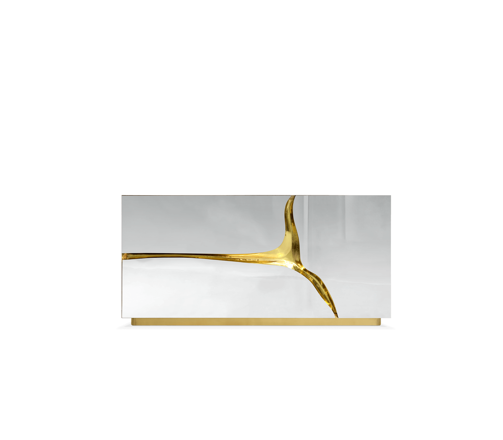 Дизайнерская тумба Lapiaz от португальской фабрики BOCA DO LOBO — это воплощение роскоши и природной эстетики. Вдохновленная процессом растворения горных пород, тумба имитирует свежеоттрескавшийся камень с эффектным золотистым интерьером, добавляющим энергии в интерьер.