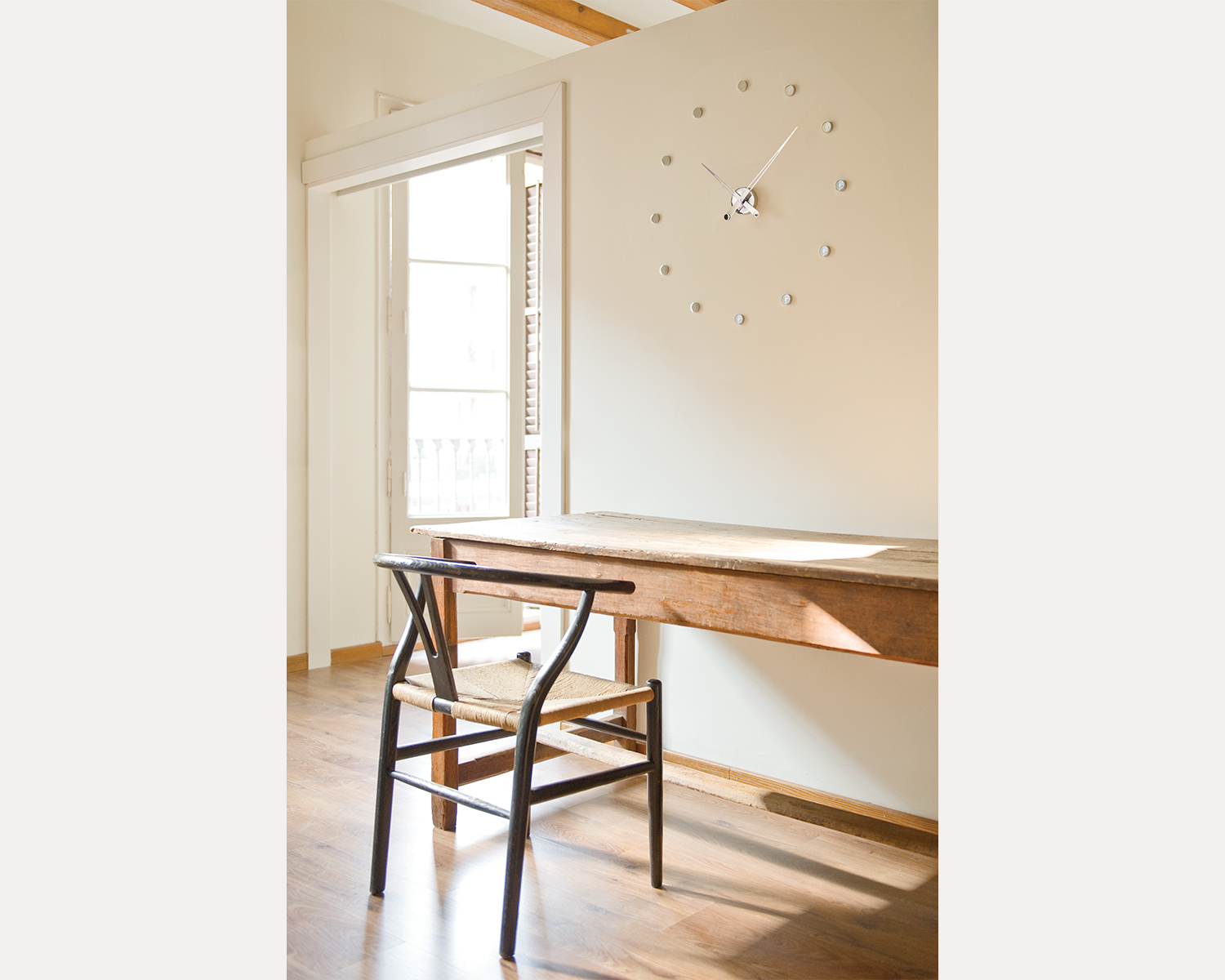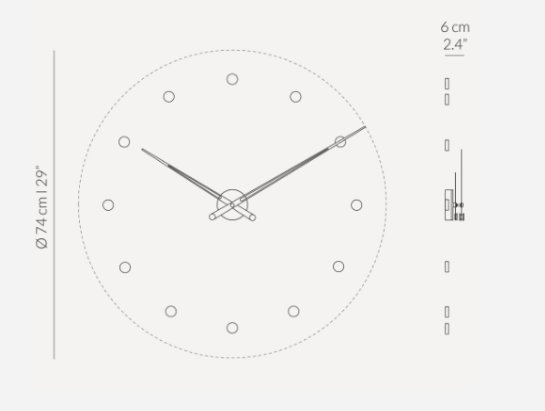 Простота — вот суть этого сдержанного дизайна, который после установки приобретает свою индивидуальность. 12 круглых металлических часовых меток и стрелки выполнены из металла или натурального ореха.