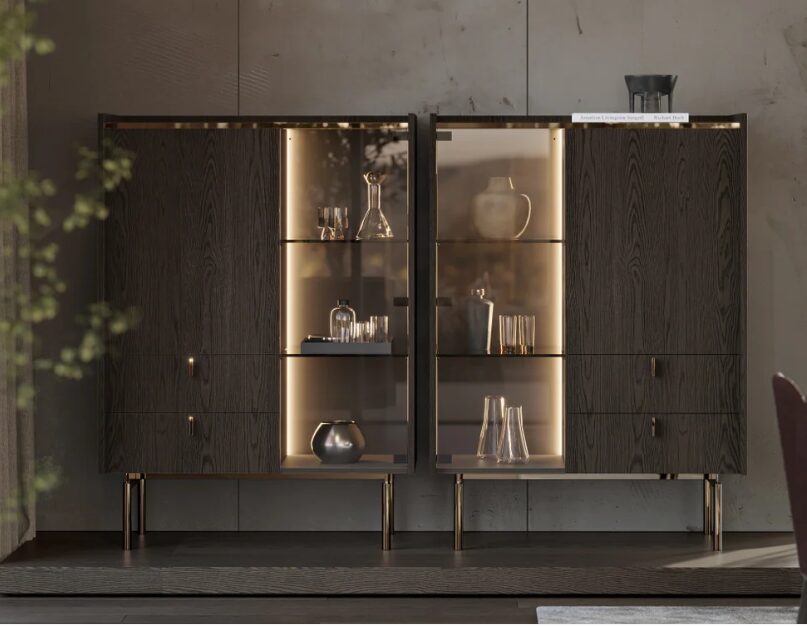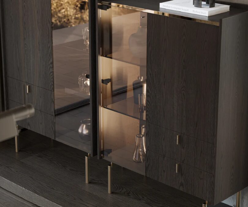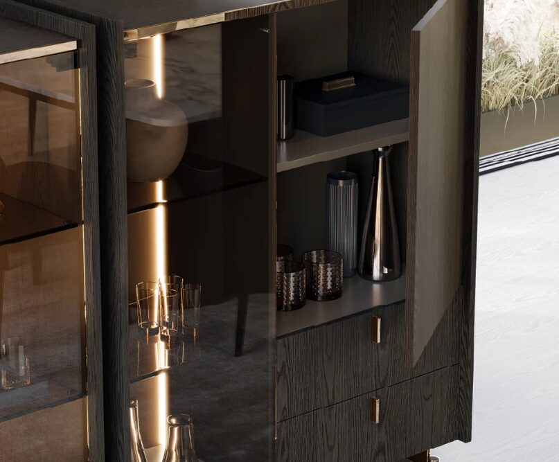 Бар Colline отличается изысканным дизайном и благородными материалами, предлагая элегантное решение для размещения предметов в баре или гостиной. Деревянная конструкция подчеркивает естественную текстуру, а стекло придает легкость и прозрачность — идеальное решение для современных интерьеров, в которых ценятся простота и изысканность.
