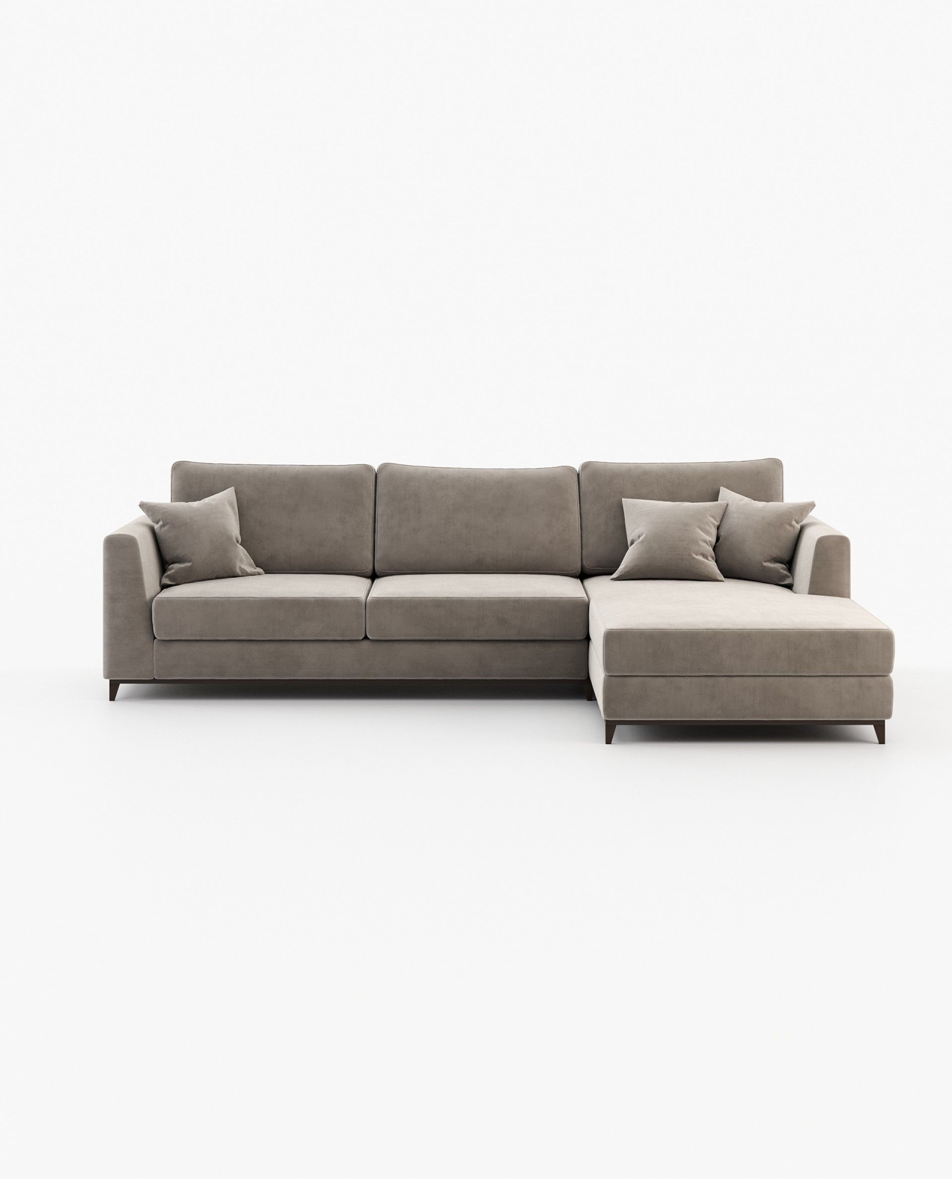 Модель сочетает чистые линии обивки и универсальный дизайн, подходящий для различных стилей. Оснащён удобными сиденьями с повышенным комфортом, а возможность трансформации в шезлонг добавляет функциональности. Доступен в нескольких размерах для оптимального размещения в пространстве.