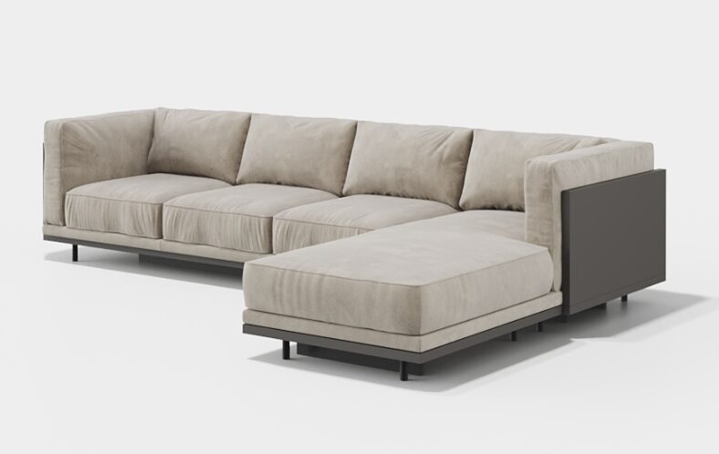 3-местный диван Senza с правым шезлонгом сочетает в себе минималистский дизайн с превосходной функциональностью, обеспечивая максимальный комфорт и легкую современную эстетику. Шезлонг обеспечивает дополнительное пространство для стильного отдыха.