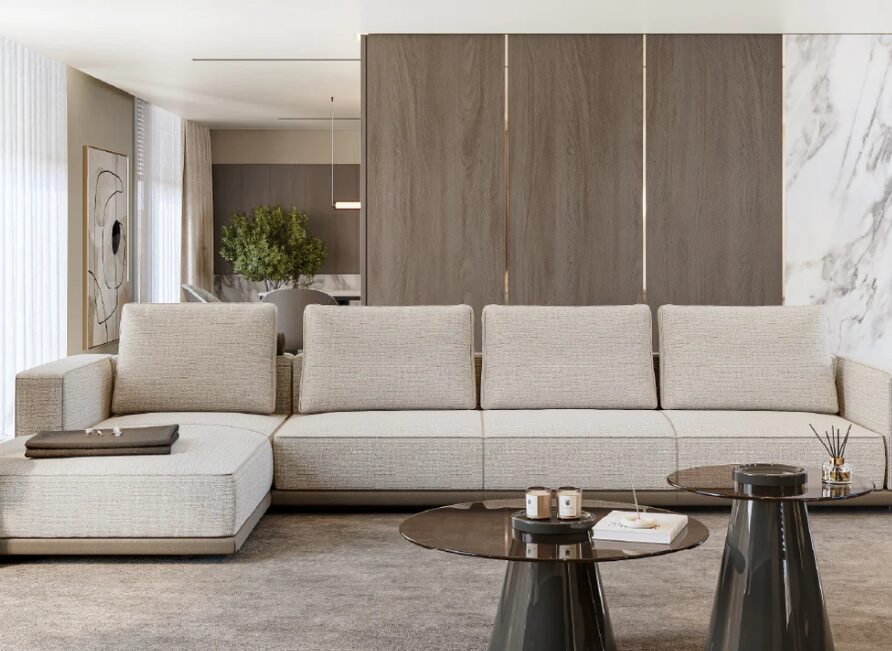 3-местный диван Vollmer предлагает точную интерпретацию комфорта благодаря лаконичному дизайну, в котором особое внимание уделяется структуре и визуальной сдержанности. Идеально подходит для больших гостиных и помещений с архитектурным стилем, он сочетает в себе солидность с ощущением легкости и порядка.