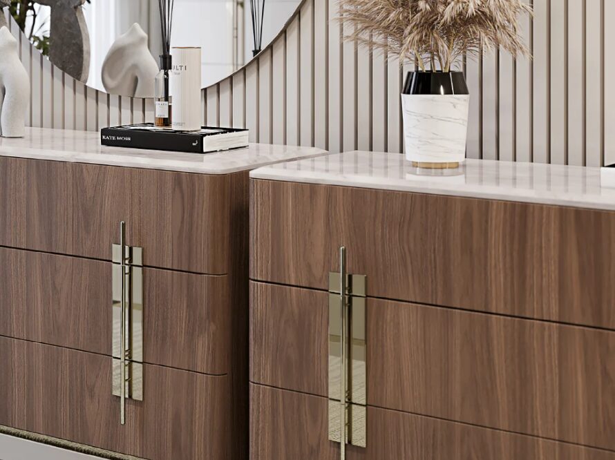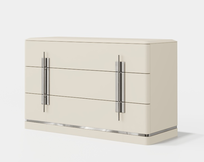 Комод Batha воплощает в себе баланс между функциональностью и присутствием, благодаря широкой и низкой конструкции, которая придает пространству визуальную стабильность. Идеально выровненные выдвижные ящики без видимых ручек подчеркивают чистоту линий и непрерывность поверхностей. Идеально подходит для спален или гардеробных, где сдержанное хранение сочетается со сдержанной и четко очерченной эстетикой.