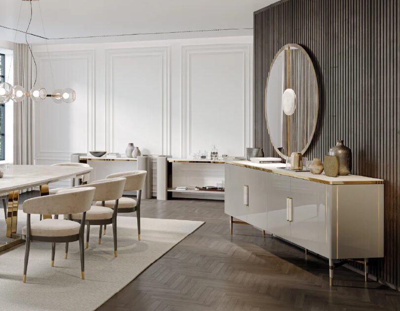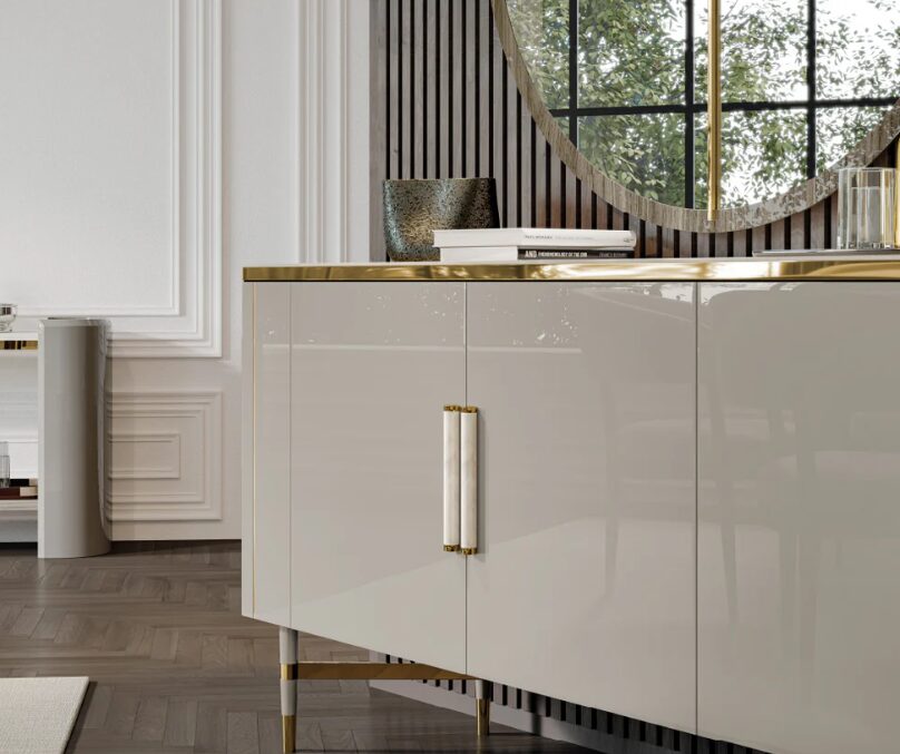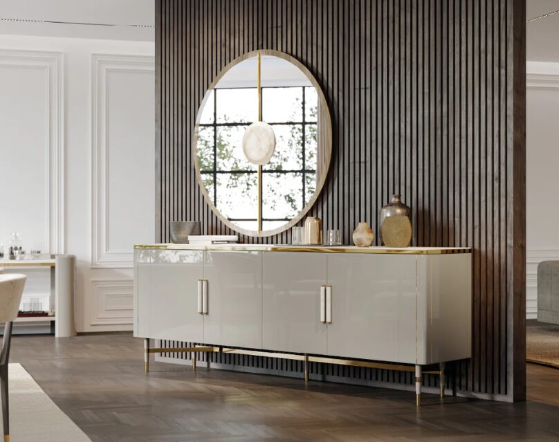 Сервант Collins отличается современным дизайном, сочетающим массивные объемы с чистыми и утонченными линиями. Идеально подходит для гостиных или столовых, которым нужна мебель, сочетающая функциональность с поразительным внешним видом, не теряя при этом формальной легкости.