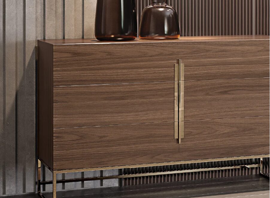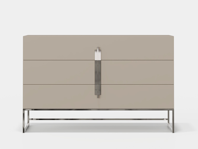 Комод Dharmi создает ощущение спокойствия благодаря своей прочной конструкции и мягко закругленным контурам. Его горизонтальная планировка в сочетании с непрерывными линиями и фасадами без ручек создает ощущение спокойного порядка и визуальной гармонии. Идеально подходит для спален и гардеробных, где мебель служит естественным продолжением пространства.