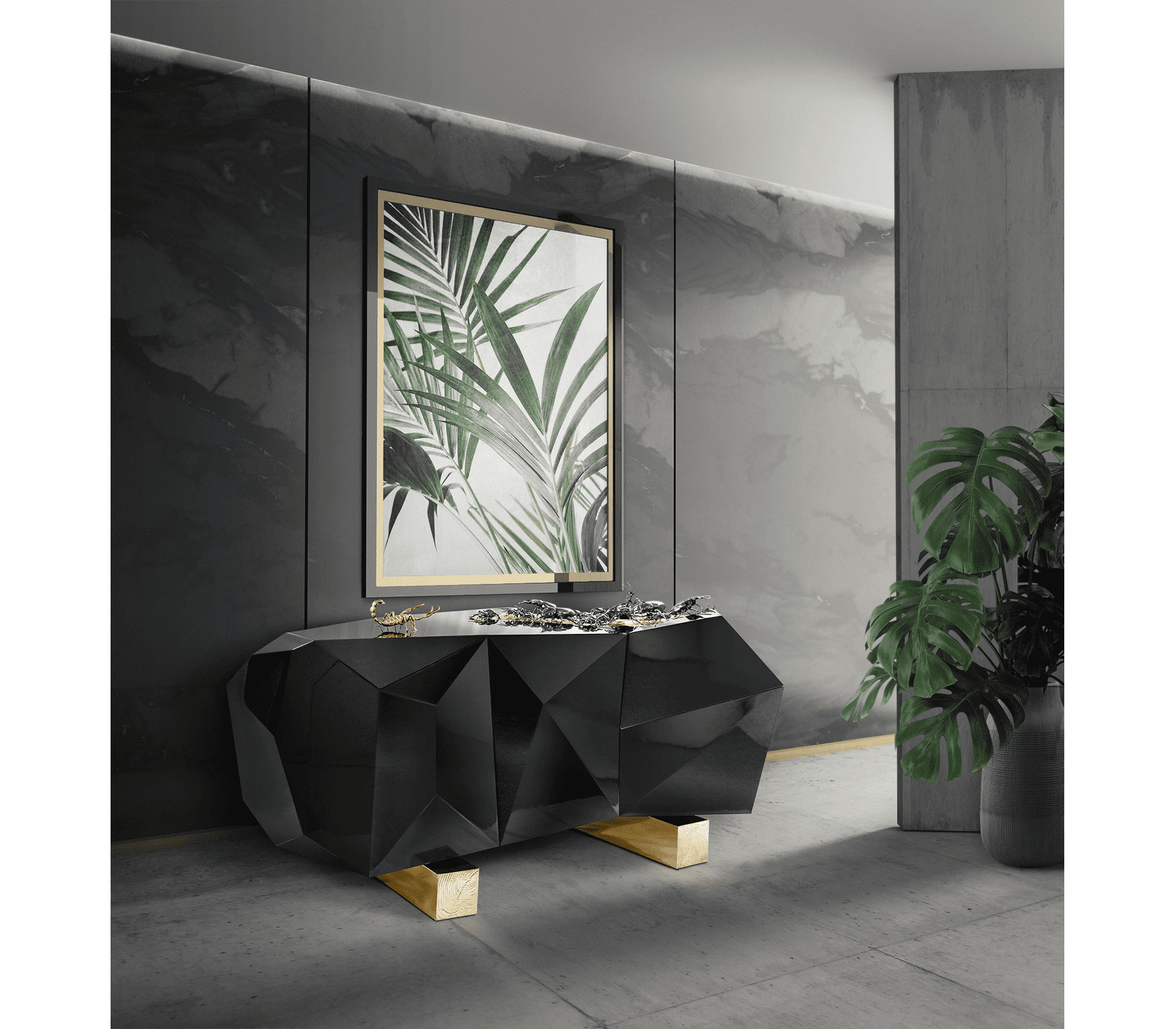 Комод Diamond Metamorphosis – это визуальная метаморфоза, где строгие линии переплетаются с динамичными формами, напоминающими огранку бриллианта. Его дизайн вдохновлен игрой света и тени, создавая эффект трехмерности и глубины. Фасады комода украшены сложными геометрическими узорами, которые подчеркивают его архитектурную выразительность. Этот предмет мебели не просто функционален – он превращает пространство в галерею современного искусства.
