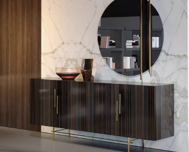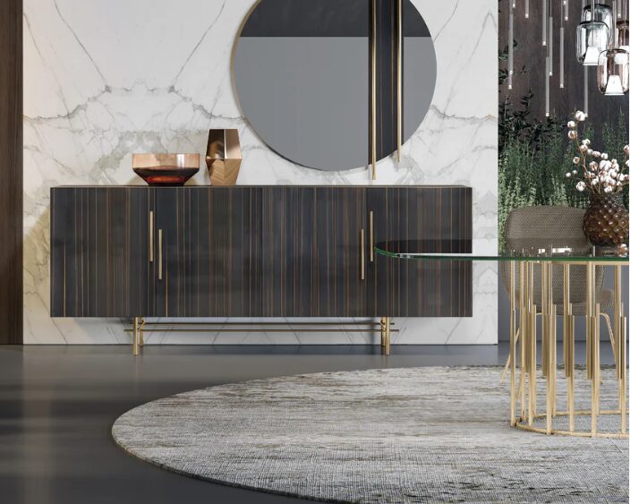 Сервант Ellender отличается округлыми формами и сбалансированными объемами, придающими помещению естественную мягкость. Он идеально подходит для гостиной или столовой, поскольку сочетает в себе функциональность и плавную эстетику, создавая теплую и современную атмосферу.