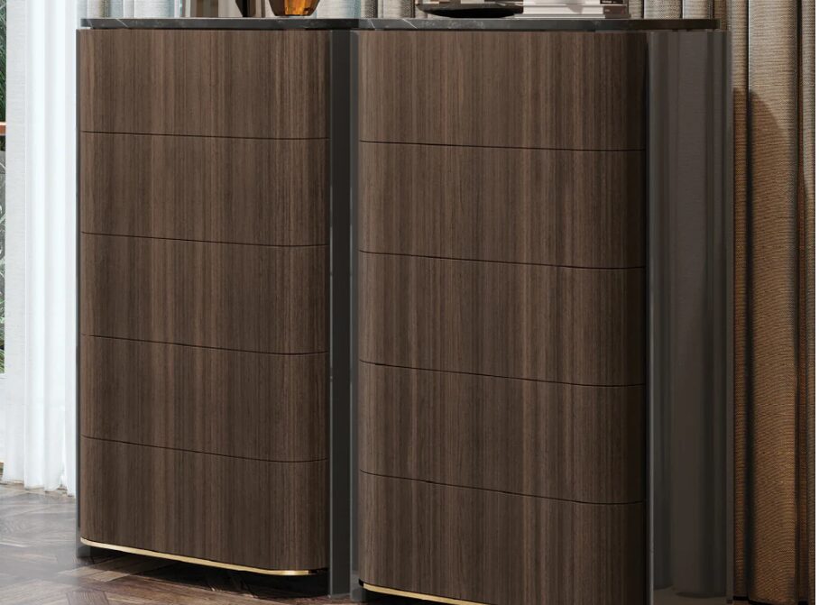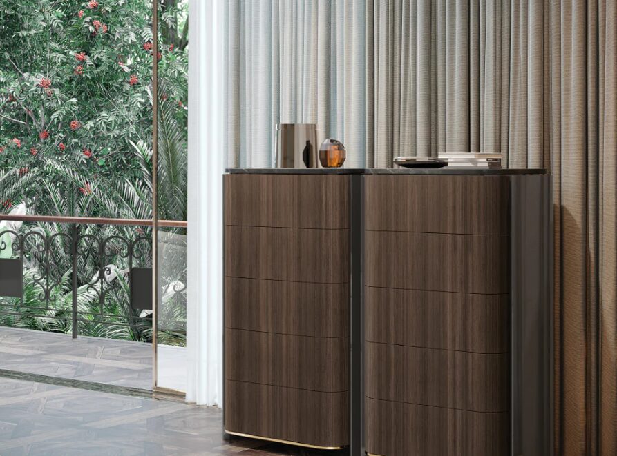 Высокий комод Vercelli отличается элегантной вертикальностью и архитектурным стилем. Благодаря точному дизайну и четко очерченным пропорциям, этот предмет интерьера обеспечивает эффективное хранение благодаря незаметным выдвижным ящикам и органично вписывается в современные спальни, люксы или гардеробные. Сильное присутствие дерева и гармония поверхностей придают ему особый характер.
