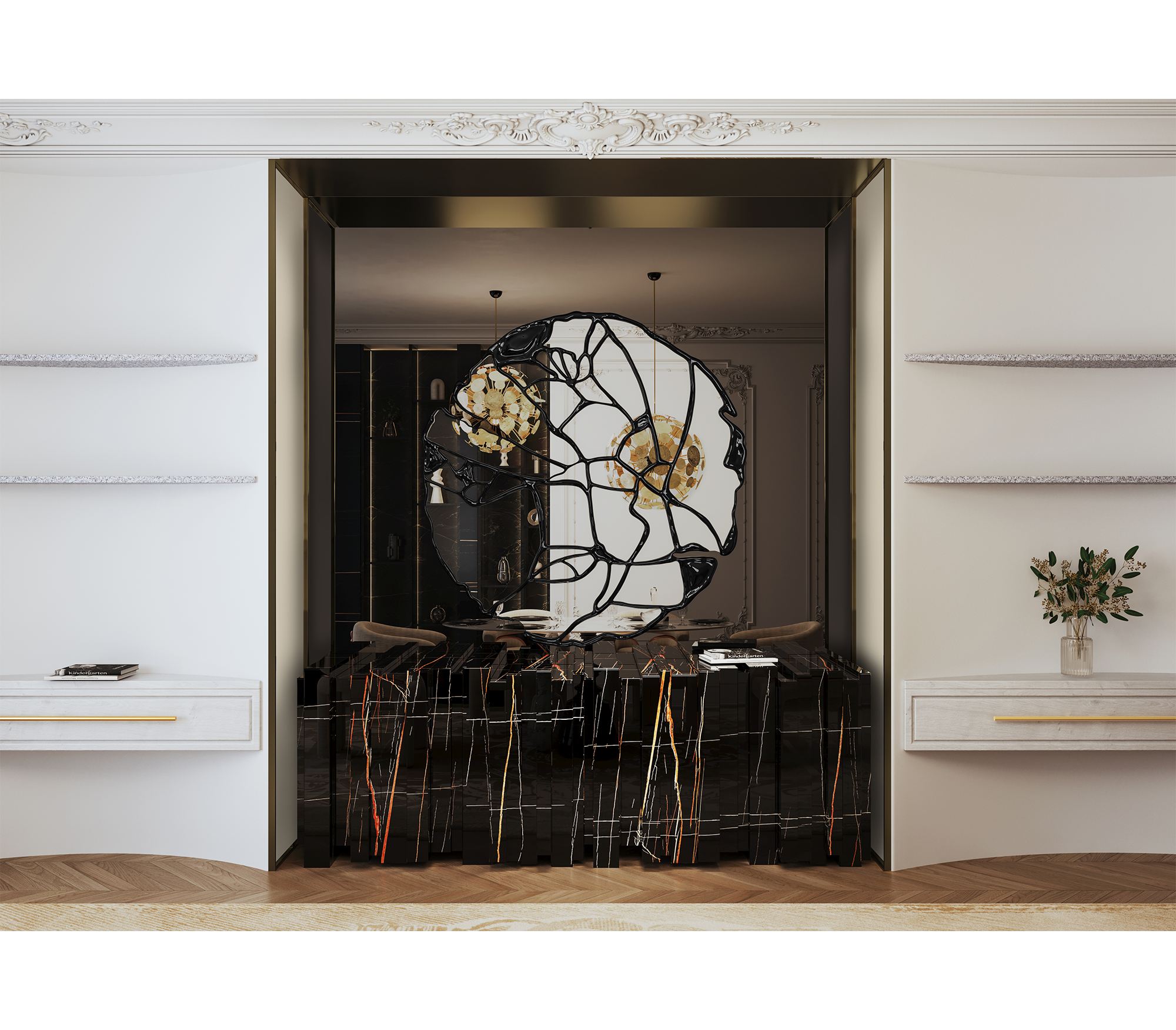 Комод Vertigo — это смелый диалог между классикой и современностью. Его динамичные линии и скульптурные изгибы создают эффект движения, словно застывшего в благородном материале. Каждая грань, каждый изгиб тщательно продуманы дизайнерами BOCA DO LOBO, превращая функциональный предмет в произведение искусства. В нем нет места случайностям — только продуманная эстетика, способная преобразить любой интерьер.