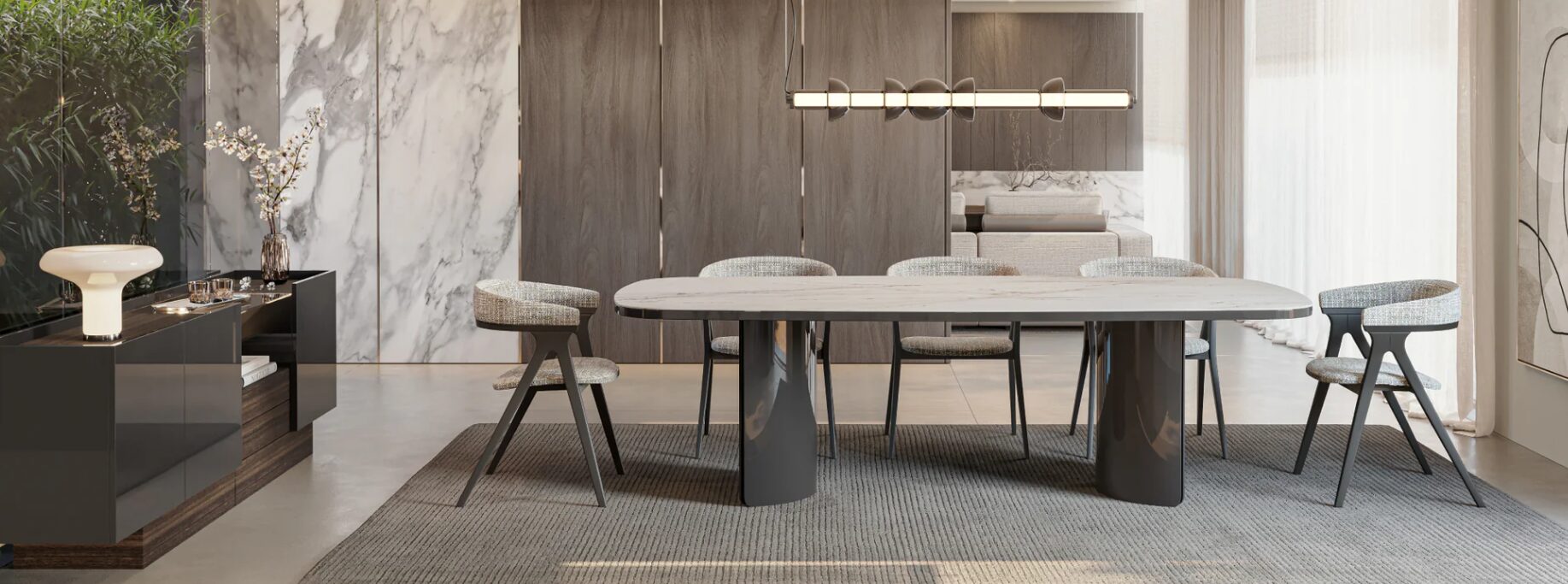 Сервант Vollmer отличается строгой конструкцией и сдержанными пропорциями, создавая спокойное и в то же время определенное присутствие в пространстве. Разработанный для современных столовых, этот предмет интерьера передает визуальный порядок и интенциональность, превращая организованность в дизайнерский жест.