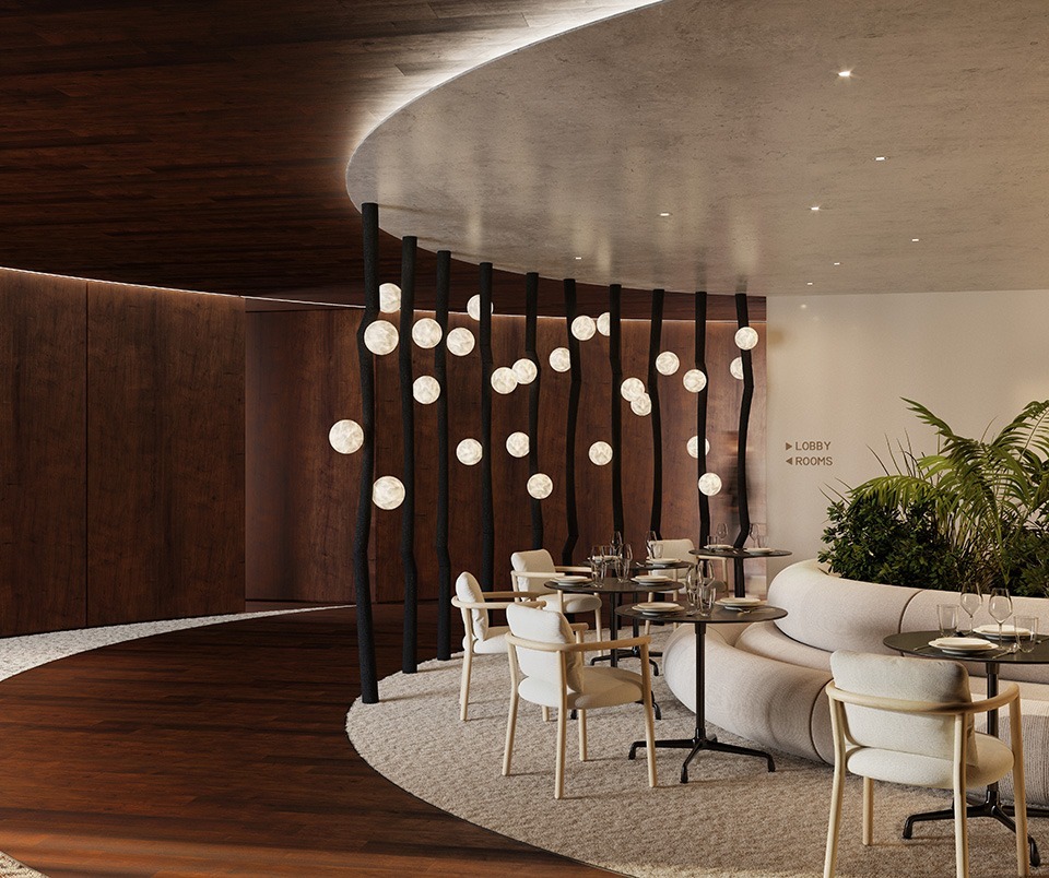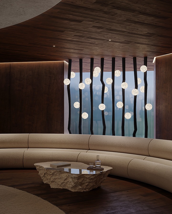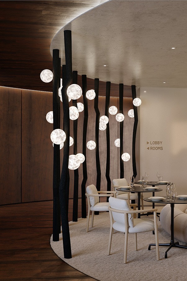 Настоящий светящийся шедевр, торшер FLAME очаровывает своим балансом между изящно расположенными сферами из алебастра и рельефным обугленным деревом. Независимо от того, стоит ли он отдельно или образует перегородку, он создает ощущение покоя, когда кажется, что свет танцует внутри материала. Поэтичный и завораживающий, он превращает любое пространство в волшебную сцену, где переплетаются тень и сияние.